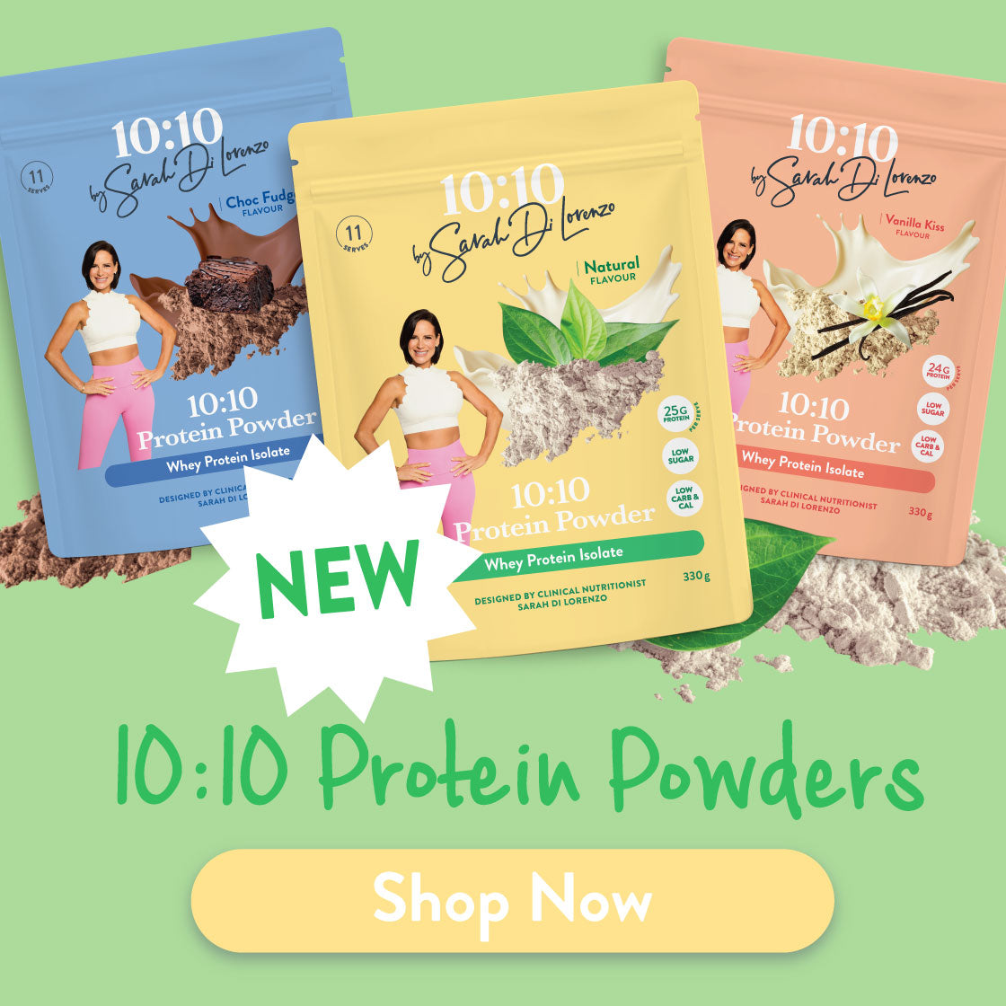 With a high protein density and low sugar, I made the 10:10 Protein Powders to help Australians reach their daily protein goals and support energy, fullness, lean muscle and weight loss.